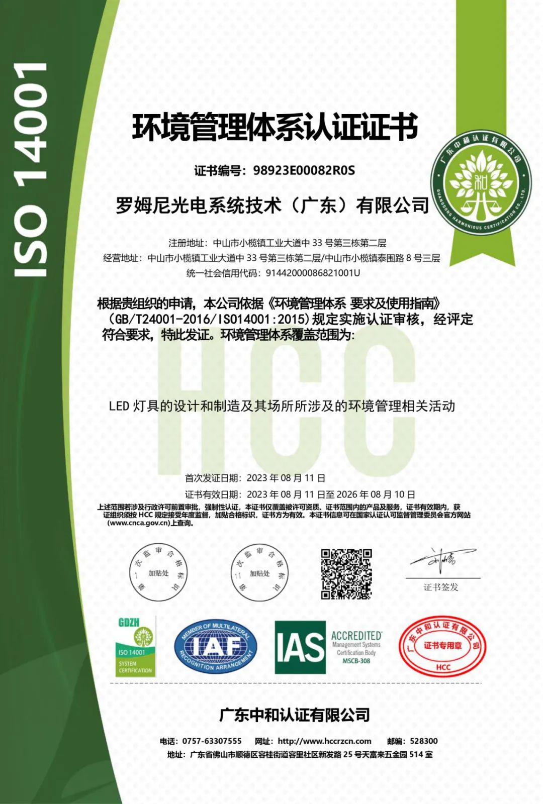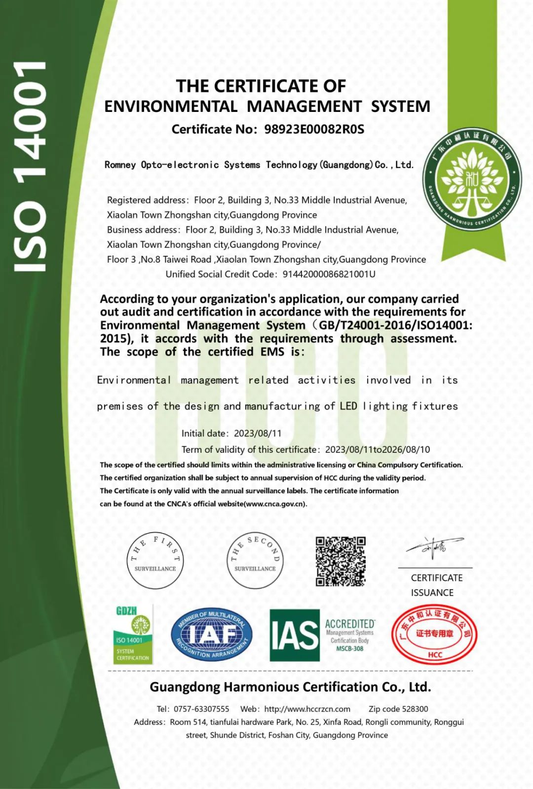 此次ROMNEY顺利通过ISO14001环境管理体系认证,标志着ROMNEY从最初的设计到最终的产品及服务,都考虑减少对环境的不利影响,有足够能力承担起环境保护这一社会责任。
