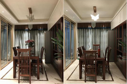 在新中式装修之中搭配北欧极简风格的灯具,从美学上来说可谓是硬朗的元素并非完全独立,而是与柔美相互混合变形,理性与感性浑然一体。将人性的不同需求融入设计,凝重的色彩中也可以找到轻松简洁的线条,再由配饰延伸出生活中温暖的因子。就如许多幸福的家庭需要夫妻彼此间的和谐与包容一般,兼容并包方能融汇贯通。