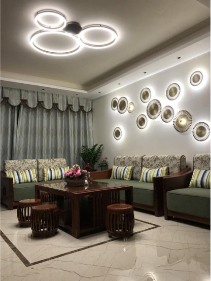 新中式风格的特点是将现代元素与传统元素相互结合的形式而产生的,同时以现代人的观点来体现出与传统中国风格不一样的设计。因而新中式和简约确实可以不冲突,新中式之所以新,在于保留了部分古典人文元素的同时,兼具了现代简约的时尚性和实用性,因而在整体的新中式装修之中配上现代简约的灯具并不会显得突兀,反而有一种相辅相成的感觉。图片中的ROMNEY圆梦系列灯具的灵感来自于奥运五环的,从美国洛杉矶举办的1932年7月30日第十届奥运会,刘长春代表中国出席第十届奥运会遗憾而归到2008年北京奥运会在中国举办,金牌榜超越美国排名第一,中国人的奥运之梦在那一刻闪耀环宇。