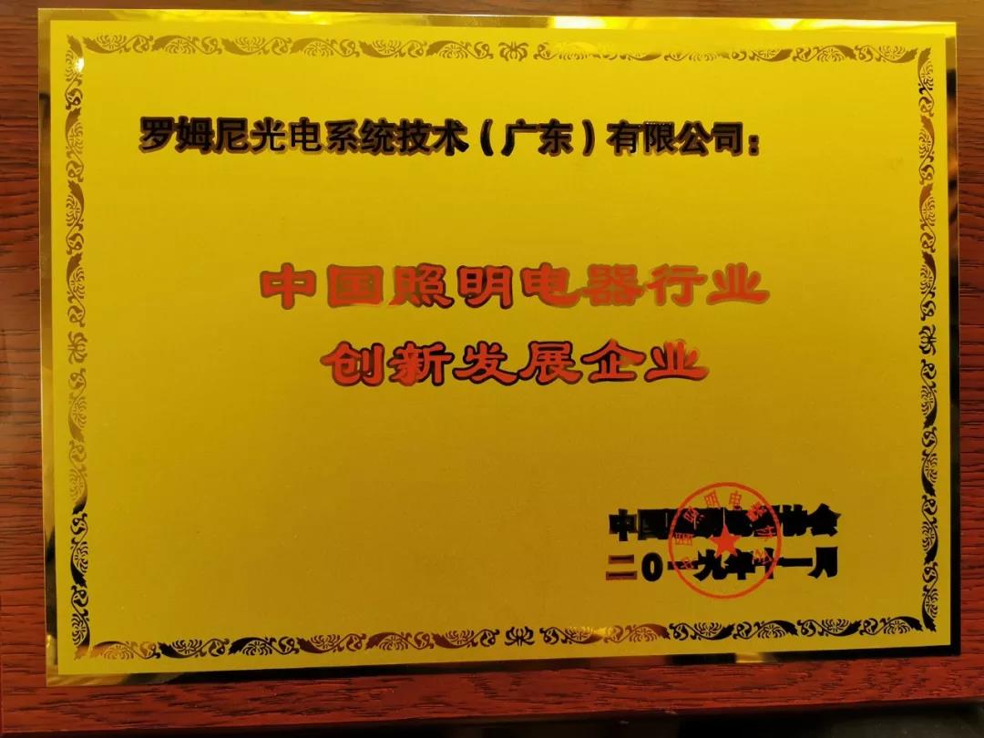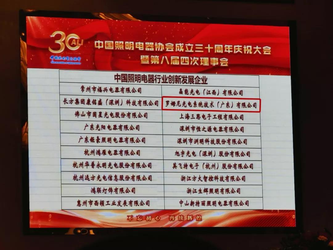 大会总结了我国照明电器行业三十年来取得的成就,展现了改革开放以来我国照明电器行业的发展风貌,对181家行业优秀集体和92名行业先进个人进行了表彰。其中ROMNEY罗姆尼荣获“中国照明电器行业创新发展企业”称号。