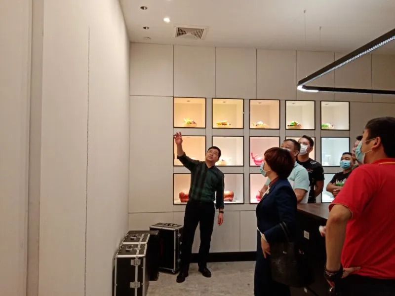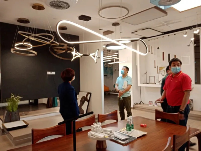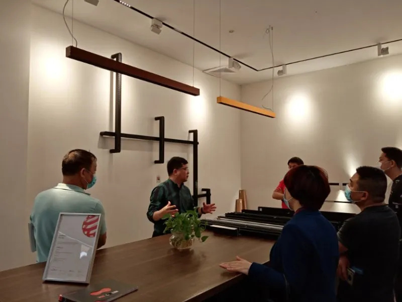 ROMNEY总经理彭银水带商会领导一行参观总部展厅,彭总简要介绍了ROMNEY基本概况和所取得的成绩。重点介绍荣获全球三大设计的“HANS汉斯”系列室内照明系统,历时3年载誉满满!还介绍了“云海系列”维权案件,荣获最高人民法院发布的“2018中国法院50个典型知识产权维权案例”的维权过程!对产品优势进行讲解以及现场演示灯具,详细地向商会领导介绍ROMNEY产品的价值。