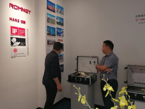 ▲ 彭总向雷士照明CEO林良琦详细介绍了ROMNEY的创新作品