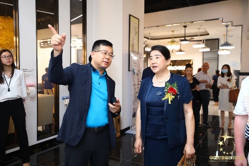 ▲ 中国灯饰共享联盟汪顺波会长莅临ROMNEY展位参观