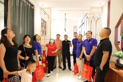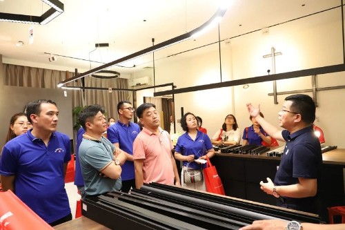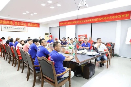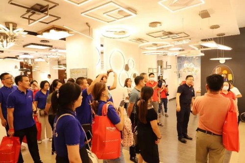 2020年8月19日晚上,由中国照明电器协会灯具专业委员会、亮点奖(中山)品牌管理有限公司、中国照明电器协会主办,古镇灯饰报联合举办的第二届中国灯都采购节。来自沈阳、西安、郑州、西安、长沙、武汉等地客商组成的原创设计展采购团,到访ROMNEY工厂考察和洽谈代理合作。ROMNEY总经理彭银水热情接待,并对他们的到来表示热烈欢迎。