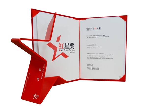 12月9日,2020中国设计红星奖颁奖活动在北京举行。历经国际、国内权威专家的评审, ROMNEY"HANS汉斯”灯具照明系统从7000多件产(作)品中脱颖而出,荣获红星奖的“银奖”。同时获得银奖作品选送企业还有顺丰、科大讯飞、联想、小米、上汽集团等优秀企业。获得金奖的作品选送企业有华为、通用汽车、百度地图等。