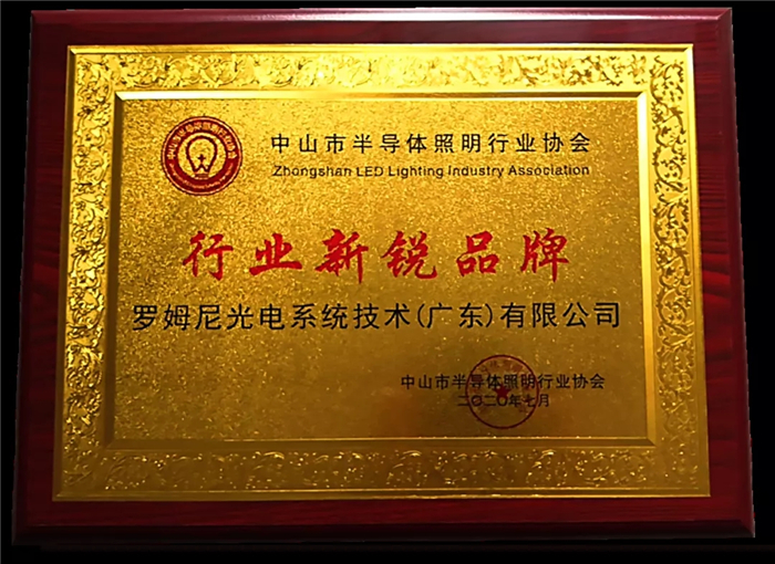 12月15日,中山市半导体照明行业协会召开2020年答谢年会暨年度表彰大会。在出席大会的近300位企业代表的见证下,协会举行了年度表彰大会,分别颁发了“十年杰出贡献奖”、“行业领袖品牌奖”、“行业新锐品牌奖”、“优秀会员企业”、“优秀合作伙伴”五项荣誉。ROMNEY荣获中山市半导体照明行业协会年度表彰大会"行业新锐品牌"称号。