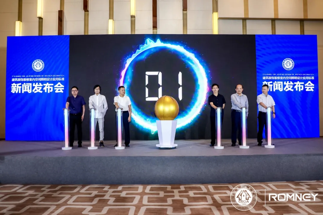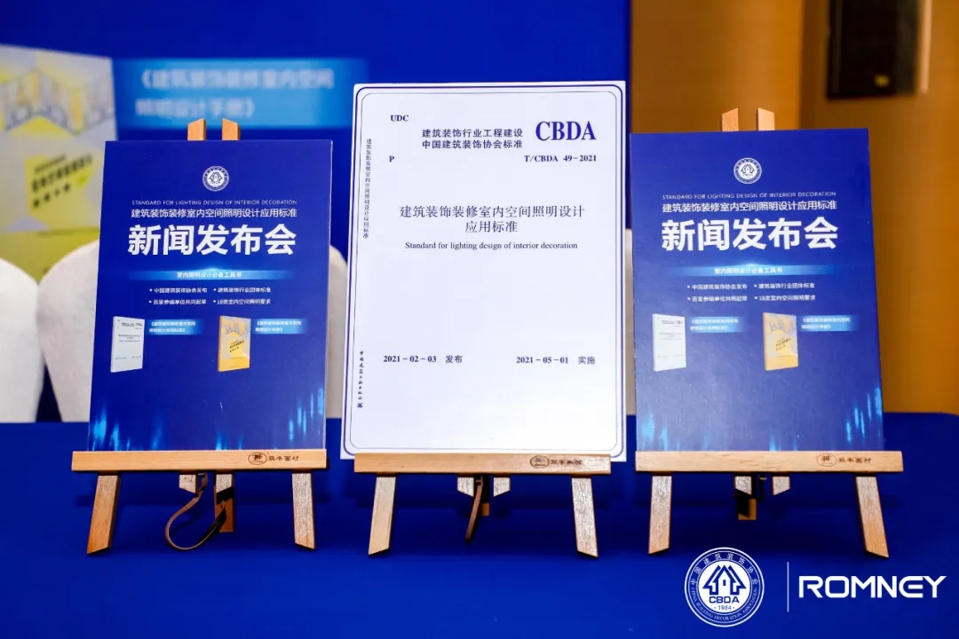 当天发布会上,中国建筑装饰协会副会长兼秘书长张京跃、中国建筑装饰协会副秘书长刘原、中国建筑装饰协会建筑电气分会秘书长张玉峰、ROMNEY总经理彭银水等行业嘉宾及媒体代表出席现场,共同见证国内建筑装饰行业首部“室内空间照明设计应用”团体标准的发布。